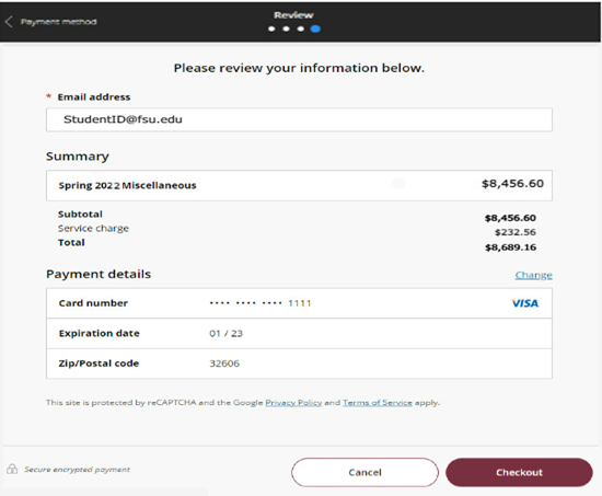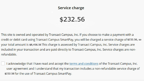 step 10: If paying by credit card, acknowledge the service fee