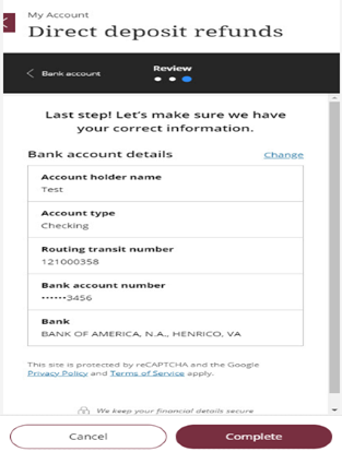 Step 4: Select "Direct deposit refund" to be redirected to Transact